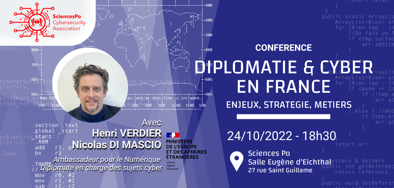 Nous avons l’honneur d’accueillir ce lundi 24 octobre, l’Ambassadeur pour le numérique Henri Verdier ainsi que le diplomate Nicolas Di Mascio pour une conférence sur la cyber diplomatie.![]()